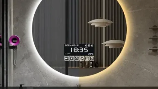 19-дюймовое круглое светодиодное зеркало с защитой от запотевания, датчиком движения и другими интеллектуальными функциями. Характеристики Функция защиты от запотевания (антипар):...