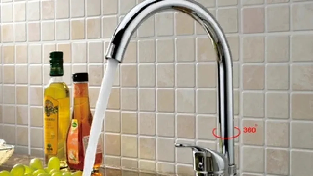 Однорычажный смеситель с поворотным изливом и полированным хромированным покрытием для горячей и холодной воды, который можно использовать для раковины в ванной и кухне.