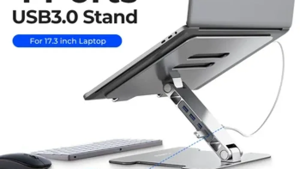 Материал и конструкция: Подставка изготовлена из алюминиевого сплава (толщина 2 мм) с анодным оксидированием, что обеспечивает прочность, устойчивость к царапинам и коррозии. Эргономика: Она позволяет регулировать высоту и угол наклона для достижения оптимального положения экрана на уровне глаз, что способствует улучшению осанки пользователя. Охлаждение: Открытая конструкция улучшает пассивную циркуляцию воздуха, предотвращая перегрев ноутбука. Интегрированный USB-концентратор: Встроенный хаб с четырьмя портами USB 3.0 обеспечивает скорость передачи данных до 5 Гбит/с, решая проблему нехватки портов на современных тонких ноутбуках. Портативность: Складная конструкция делает ее удобной для хранения и переноски, что подходит как для домашнего, так и для офисного использования. Совместимость: Подходит для ноутбуков с диагональю экрана от 10 до 15,6 дюймов (некоторые модели могут поддерживать до 17,4 дюймов).
