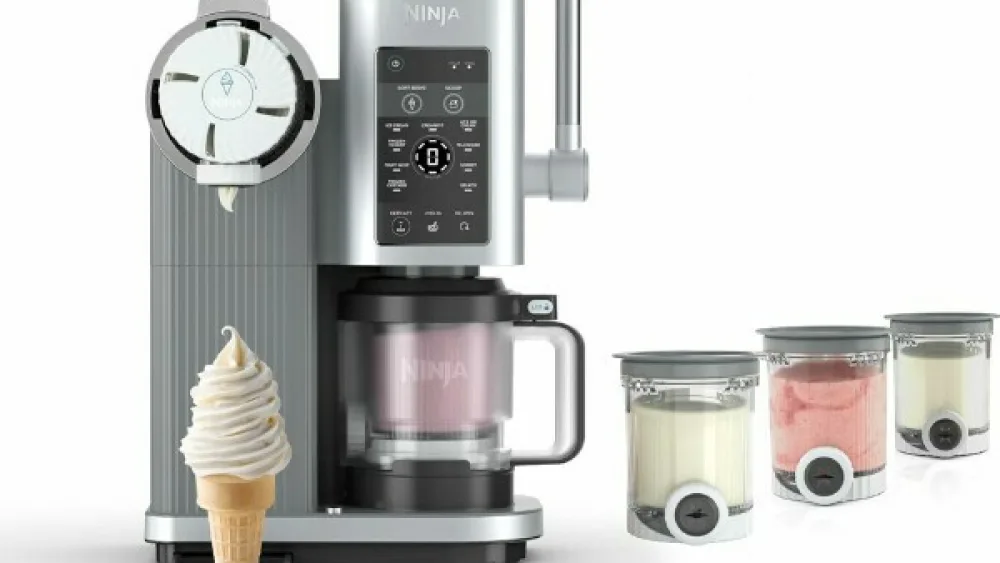 Ninja CREAMi Scoop & Swirl NC701 — это универсальный аппарат для приготовления мороженого, вошедший в список «Любимых вещей Опры» 2025 года. Он позволяет создавать как классическое мороженое шариками, так и мягкое мороженое (Soft Serve) с помощью специальной ручки для закручивания.